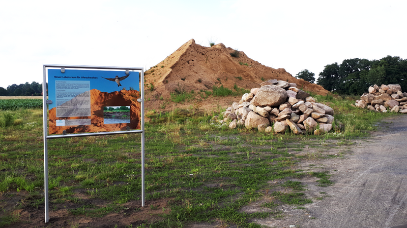 Seit einigen Tagen steht eine Infotafel neben den Nistplätzen der Uferschwalben in Venne. Sie informiert über die Eigenschaften der geschützten Vögel und ihren Lebensraum. Die Uferschwalben sind noch bis August an der B 218 in Venne zu beobachten. Die Zugvögel haben sich im vergangenen Frühjahr dort heimisch gemacht, nachdem als Folge der Baggerarbeiten für das nebenliegende Regenrückhaltebecken ein Sandhaufen entstanden war. Mehr Informationen zu den Vögeln und ihrem neuen Lebensraum finden Sie unter dem Menüpunkt "Maßnahmen".