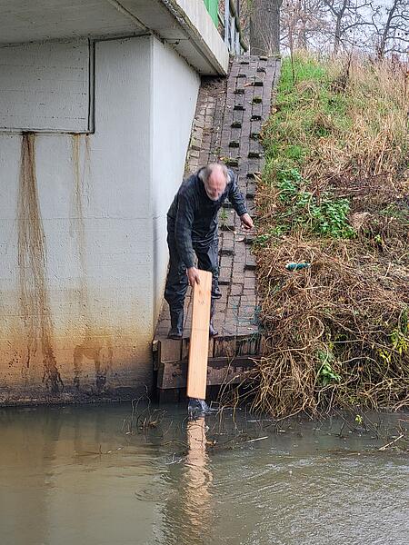 Unterstützung erhielt er dabei von Ronald Siegmund-Stuckenberg, Projektverantwortlicher bei der Biologischen Station Haseniederung, und Kai Holzgräfe, Gewässerkoordinator beim UHV 70. Fachlich mit im Boot sind die Straßenmeisterei Bohmte als Baulastträger und die Wasserbehörde des Landkreises Osnabrück als Genehmigungsbehörde.
