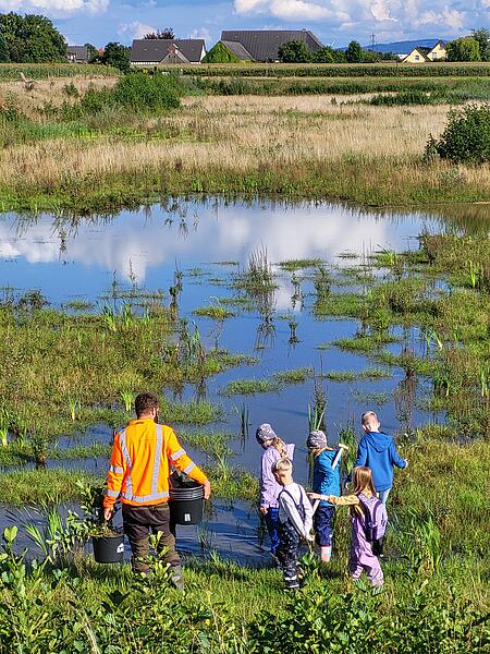 Bad Essen. Wie Renaturierung von Gewässern gelingt, das erlebten sechs Kinder im Alter von sieben bis zehn Jahren dieser Tage beim Unterhaltungsverband Nr. 70 "Obere Hunte" (UHV 70). Sie konnten sehen, wie die Natur sich ihr Areal zurückerobert, wenn die Bedingungen stimmen, und sie konnten aktiv an einem Renaturierungsprojekt mitwirken. Die Exkursion fand statt im Rahmen der Reihe „Zukunftsdiplom“ der VHS Osnabrücker Land.