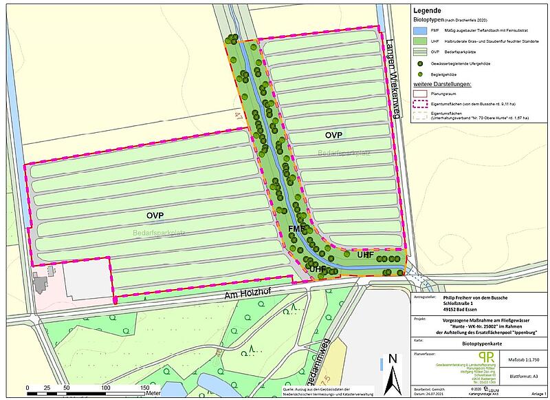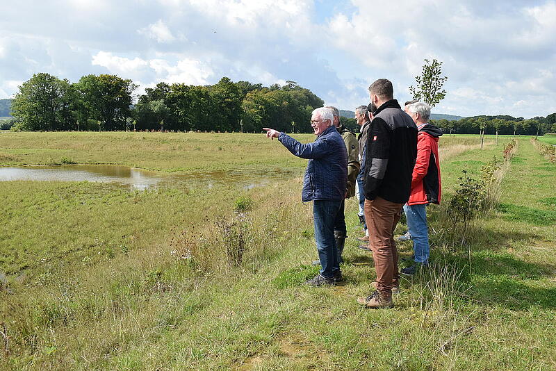 „Es handelt sich um eine privat getragene Maßnahme, die wir in Kooperation mit dem UHV umsetzen“, erklärt Philip Freiherr von dem Bussche und skizziert die positiven Auswirkungen des Vorhabens angesichts von Hochwasserschutz, Klimawandel und Artensterben, die insofern genau „dem entsprechen, was die Gesellschaft neben der Nahrungserzeugung von moderner, nachhaltiger Landwirtschaft erwartet. Damit wird in der Landschaft ein Ausgleich für den urbanen Flächenverzehr geschaffen.“