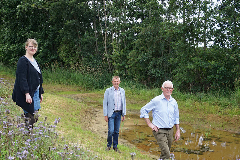 „Durch den größeren Übergangsbereich zwischen dem aquatischen und terrestrischen Bereich eignet sich das neu gestaltete Gewässer als Lebensraum für mehr Pflanzen- und Tierarten“, sagt Ingrid Vörckel. Der vergrößerte Randbereich reduziert zudem die Nährstoffeinträge der nahe gelegenen Ackerflächen, die als stark abschwemmungsgefährdet gilt. Das wiederum dient der Dümmersanierung. Denn in ihrem Zuge ist insbesondere der Eintrag von Phosphor in allen Gewässern des Einzugsgebietes des Sees zu reduzieren.