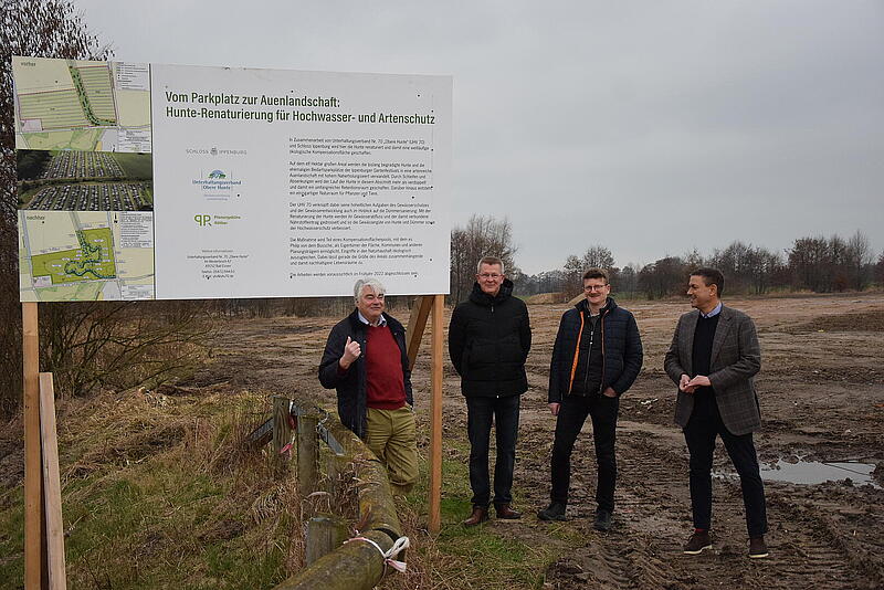 Die Maßnahme – eine Kooperation von Unterhaltungsverband Nr. 70 „Obere Hunte“, in seinem Verbandsgebiet verantwortlich für die Entwicklung und Unterhaltung der Hunte, und Philip von dem Bussche als Eigner der Fläche – dient gleichermaßen dem Hochwasser- wie dem Artenschutz.