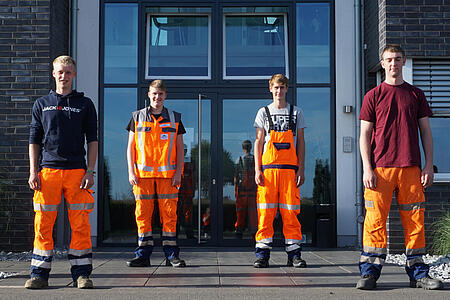 Weitere Ausbilder sind Thorsten Schreck (Fachkraft für Abwassertechnik) und Hermann Schröder (Land- und Baumaschinenmechatroniker). Bendix Hörsemanns Ausbildung dauert dreieinhalb Jahre. Die anderen Lehrlinge machen in drei Jahren ihren Abschluss.