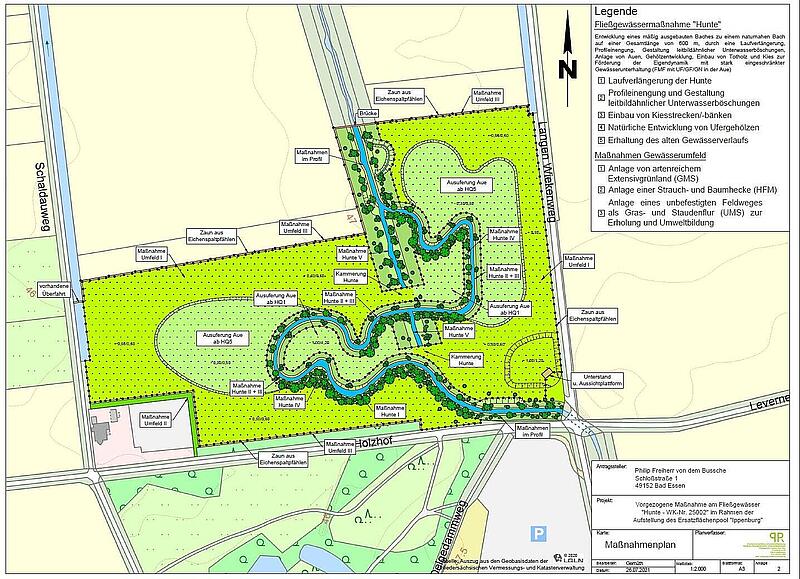 Bad Essen. Eine beispielhafte Kooperation zwischen Gewässerentwicklung und Landwirtschaft und ein einzigartiges Projekt im Sinne von Nachhaltigkeit und Hochwasserschutz entsteht in der Gemeinde Bad Essen: In Zusammenarbeit von Unterhaltungsverband Nr. 70 „Obere Hunte“ (UHV 70) und Schloss Ippenburg werden auf einer Fläche von elf Hektar die begradigte Hunte und die bisherigen Bedarfsparkplätze der Ippenburger Gartenfestivals in eine artenreiche Auenlandschaft mit hohem Naherholungswert verwandelt.