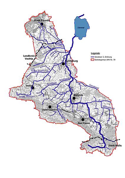 Das Verbandsgebiet des UHV 70 erstreckt sich über das Einzugsgebiet der Hunte, von der Huntequelle bis einschließlich zum alten Bornbach (südlich des Dümmer Sees).
